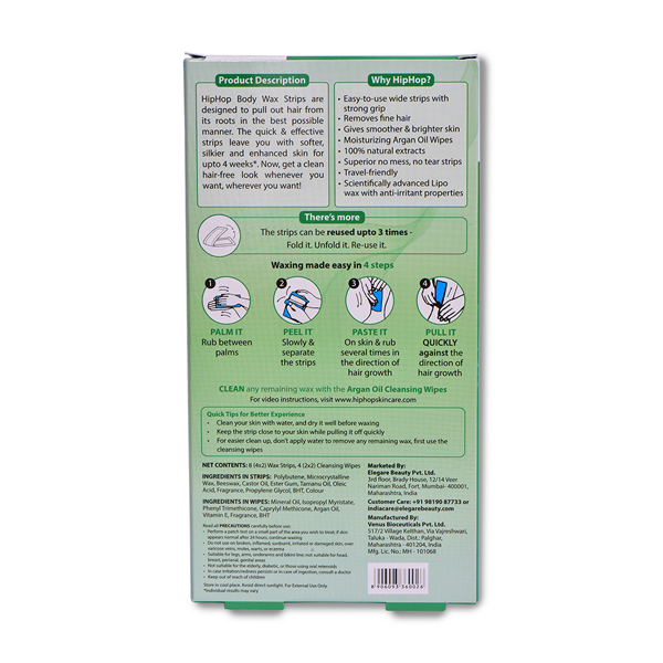 HipHop Body Wax Strips with Aloe Vera (8 Strips)